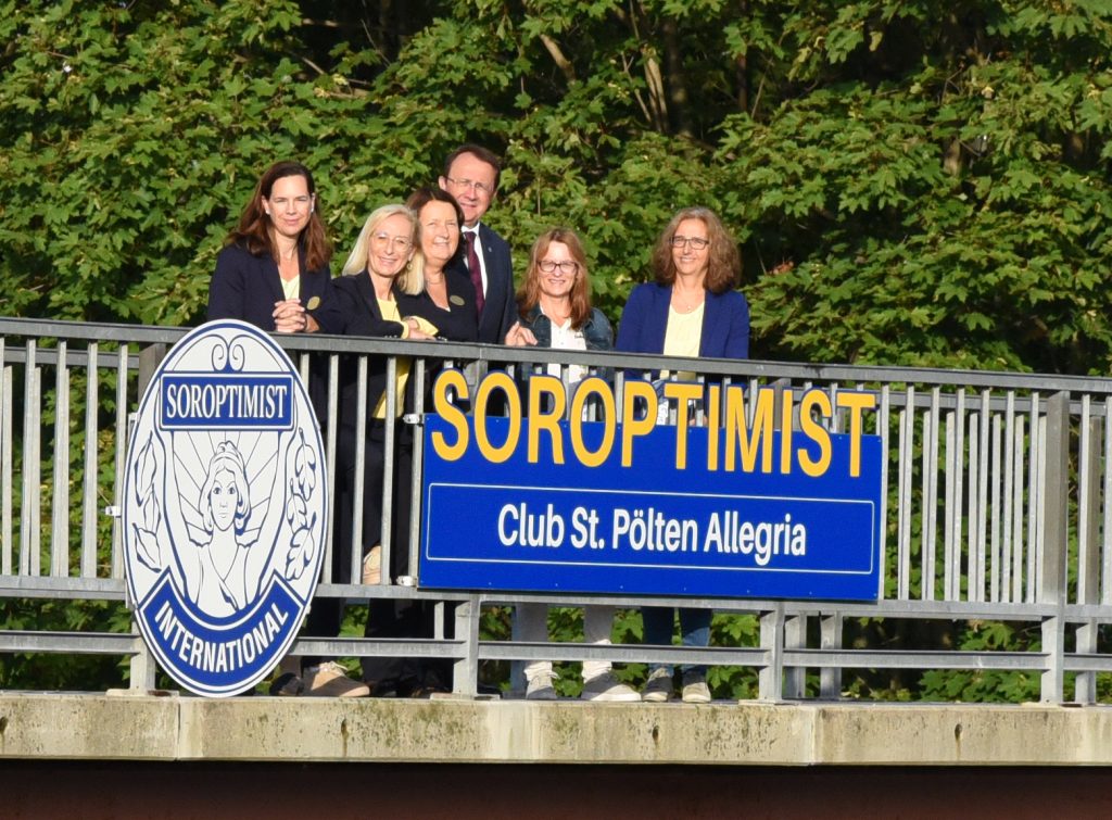- Am 11.September 2024 eröffneten wir, gemeinsam mit Bürgermeister Matthias Stadler, die Soroptimist-Brücke über die Traisen. Die Aufstellung des dazugehörigen Trinkbrunnens und der orangen Bank gegen Gewalt musste aufgrund des Hochwassers verschoben werden.