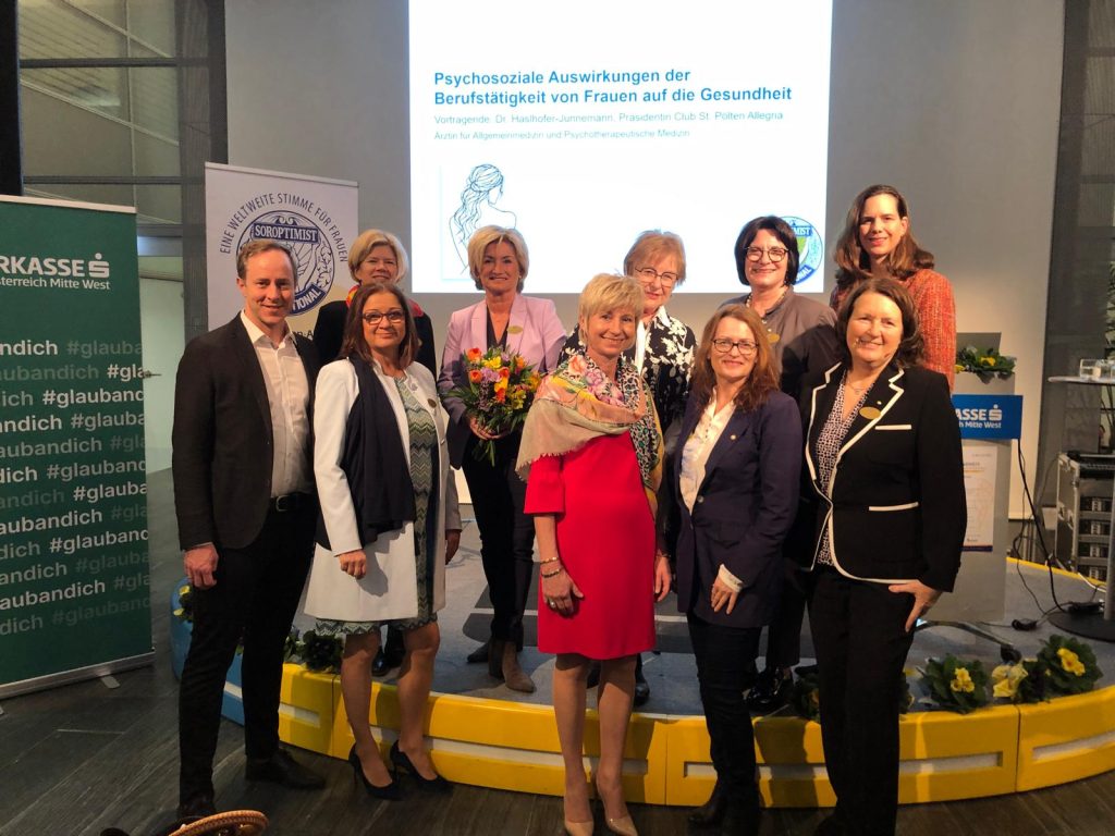 - In der Sparkasse Mitte West organisierten wir einen Abend zum Thema „Frauen-Gesundheit-Finanzen“ mit einem Vortrag von Frau Dr. haslhofer-Jünnemann zum Thema „Psychosoziale Auswirkungen der Berufstätigkeit von Frauen auf ihre Gesundheit“ und einer Podiumsdiskussion mit Clubschwestern, die von ihren Erfahrungen berichteten.
